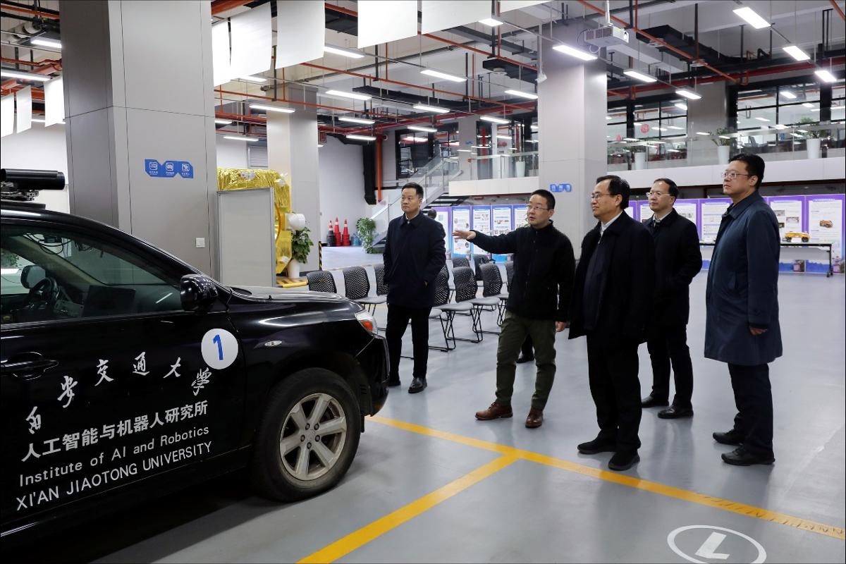 宋军继一行参观了人机混合增强智能全国重点实验室,详细了解了实验室在人工智能领域的科技创新、人才培养与产学研合作等方面取得的成果。他表示,人工智能是引领未来发展的战略性技术,山东省正积极布局人工智能与实体经济深度融合,希望以此次调研为契机,进一步加强与西安交大的合作,推动校地共建共享,促进科技成果转化与高端人才交流,共同服务国家创新驱动发展战略。